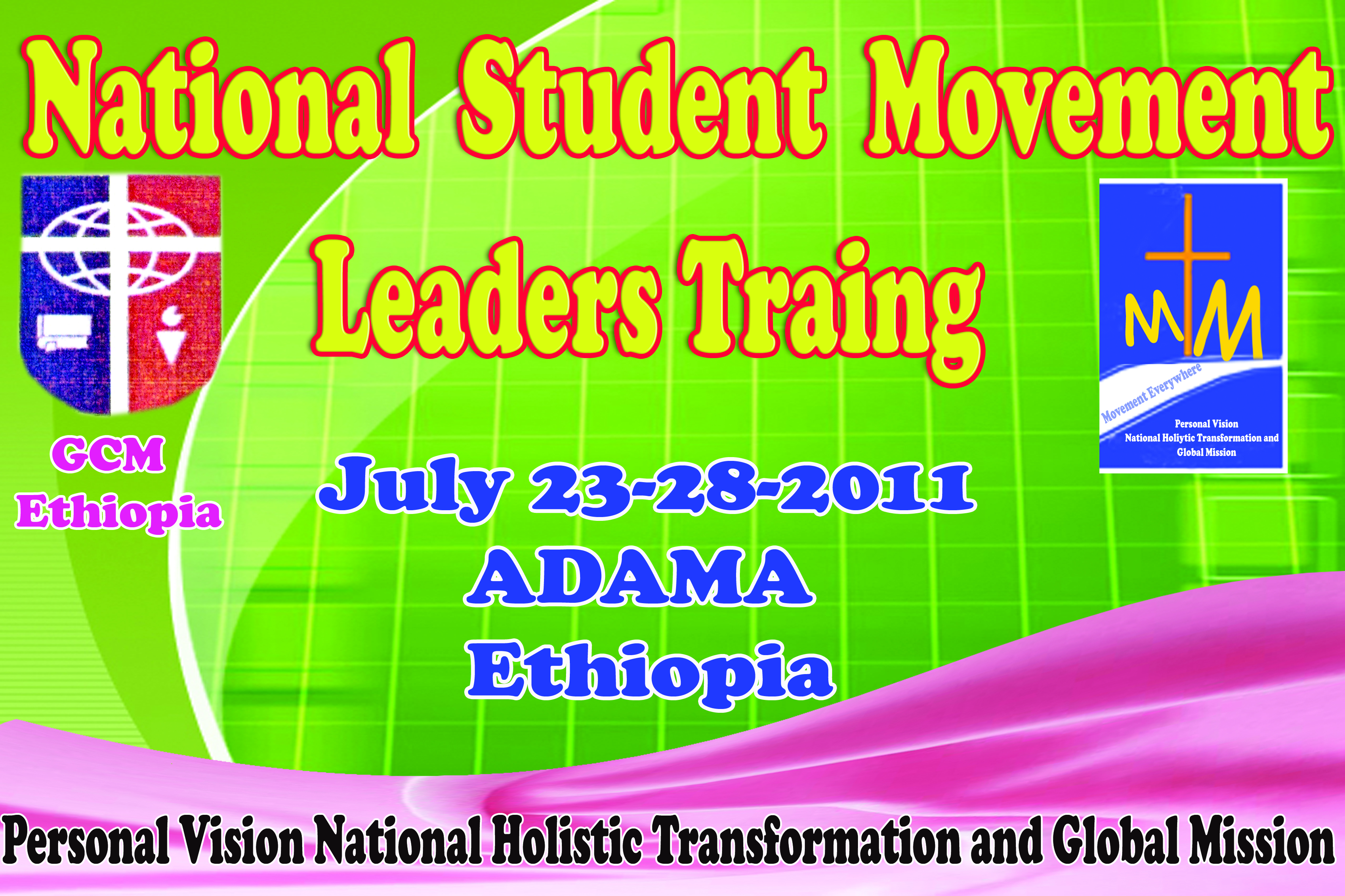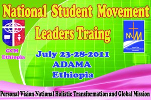 we are planned to training 1300 student leaders on movement building for one week at Adama, Ethiopia 99 KM far from Addis Ababa the Capital City of Ethiopia. Our purpose for the training is to give them Personal vision, National holistic Transformation and Global Mission. Join with us in PRAYER!!!